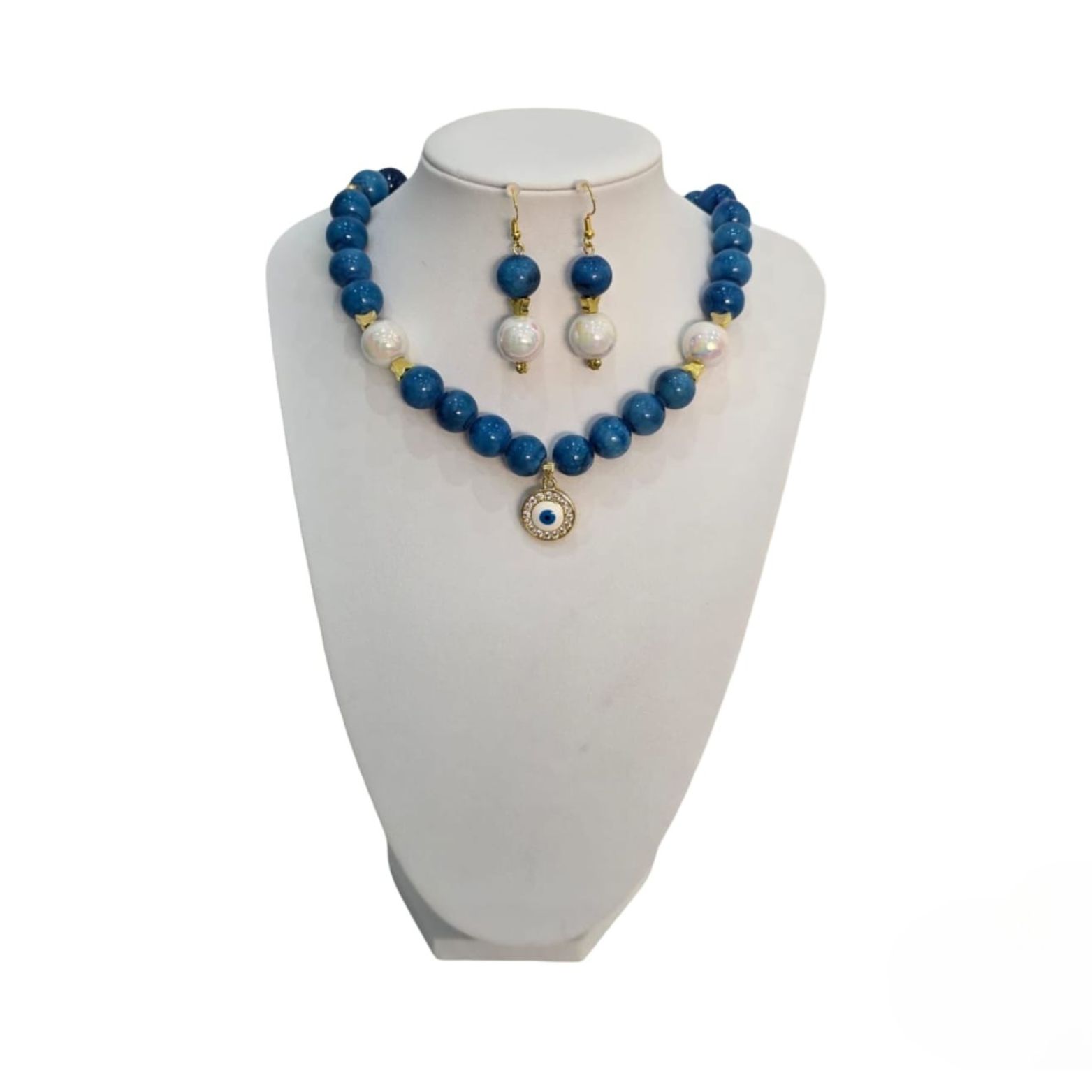 • Gold-plated Druzy Resin Evil Eye Pendant & Loop