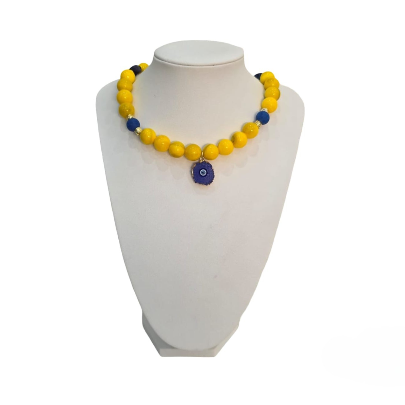 - Gold-plated Druzy Resin Evil Eye Pendant & Loop